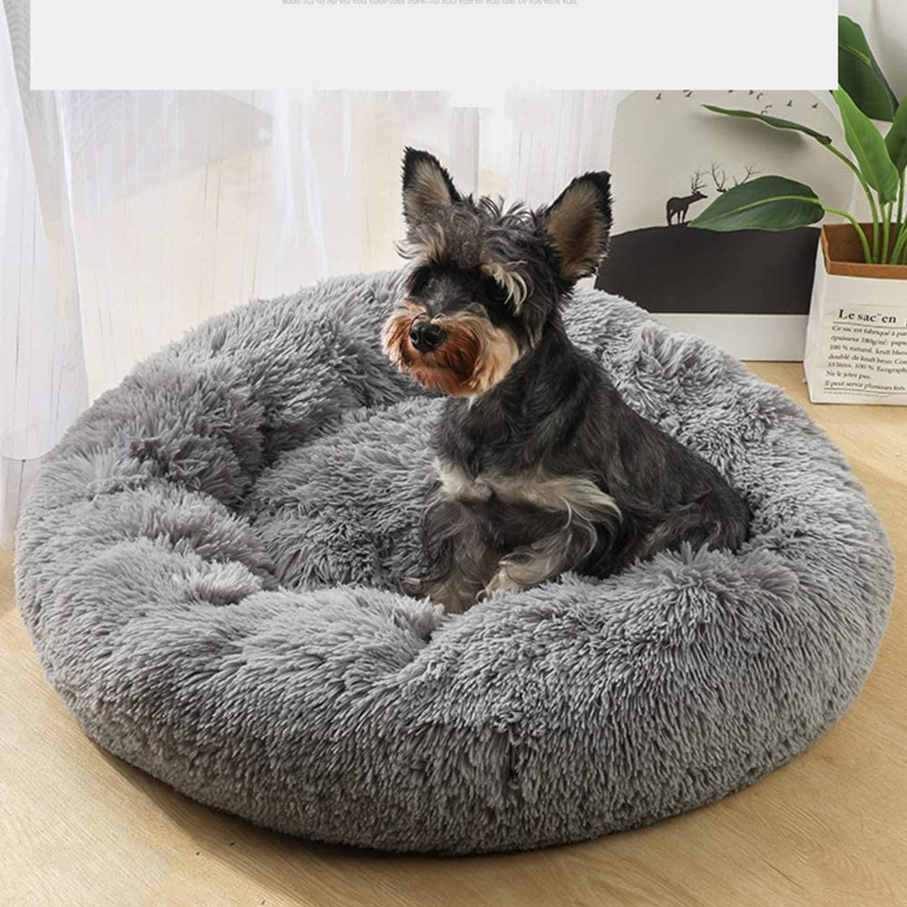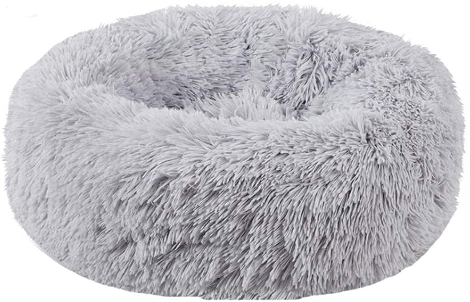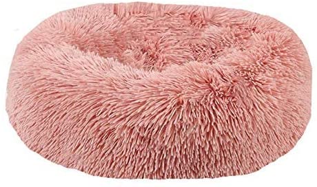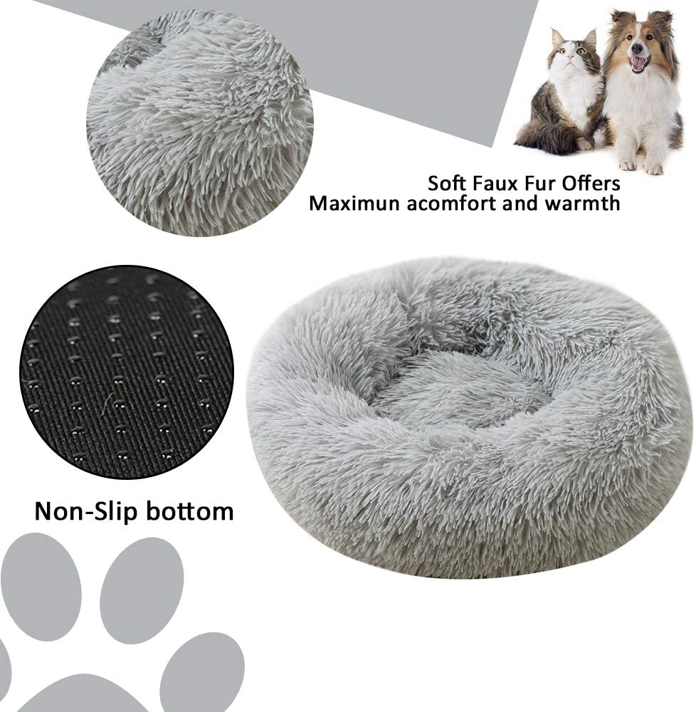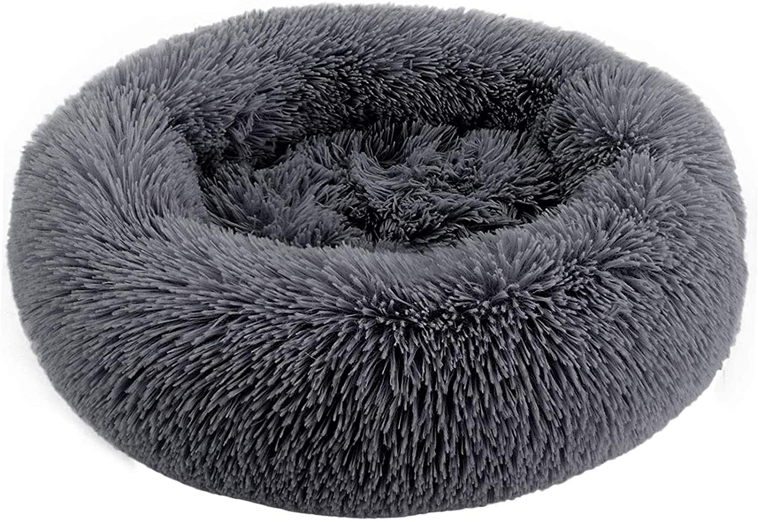 Small Dog Bed- Round Donut Washable Plush Fluffy Faux Fur Soft Cushion Beds