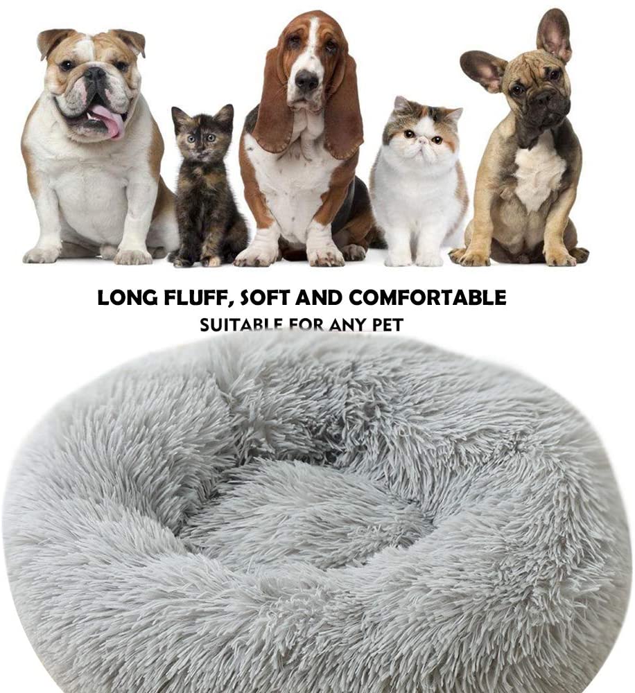 - 1.The cats/dog bed is surrounded by soft long plush; it is fluffy and soft to the touch. Note:Size S is suitable for little cat.